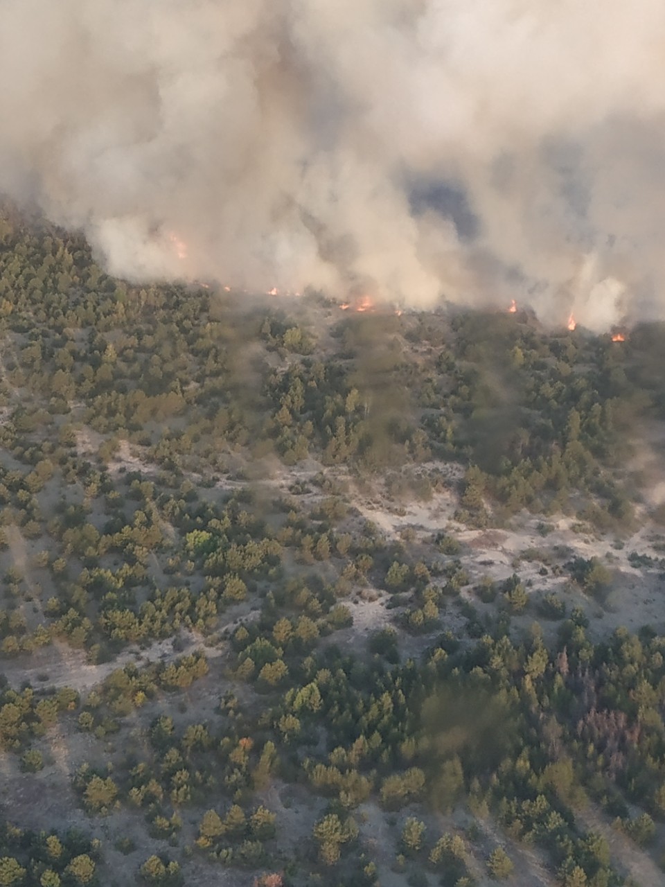 Работает авиация Специального авиационного отряда ГСЧС Украины г.Нежин. Привлечен самолет Ан-32П и вертолет Ми-8. По состоянию на 18:30 авиацией сделано 4 сбросы воды. Тушение пожара продолжается.