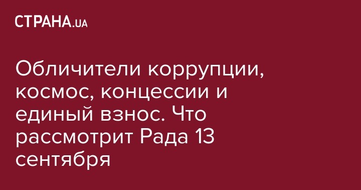 Верховная Рада сегодня рассмотрит президентский законопроект об обличителях коррупции, проект закона о концессии и о введении единого счета для уплаты налогов и сборов, а также о едином взносе. Об этом говорится в повестке дня, опубликованном на сайте парламента.