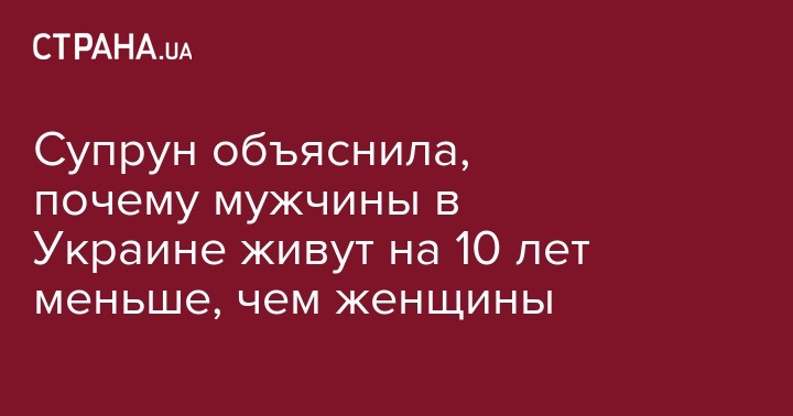 Супрун объяснила, почему мужчины в Украине живут на 10 лет меньше, чем женщины