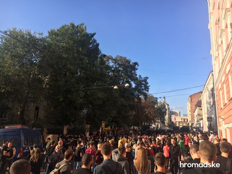 На пересечении улиц Рымарской и переулка Некрасова, у офиса "Фрайкора", полиция начала задерживать праворадикалов. Правоохранители оцепили район, пойманных посадили в машины и повезли в Шевченковский участок. Всего было задержано 15 человек.
