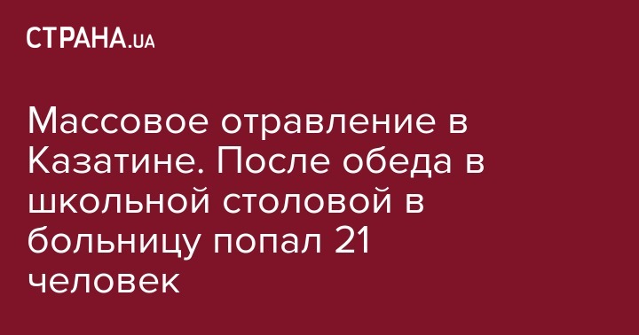 В городе Казатин Винницкой области, 14 сентября, в столовой школы №2 произошло массовое отравление, 21 человек до сих пор находится в больнице. Об этом сообщает пресс-служба ГСЧС Украины.