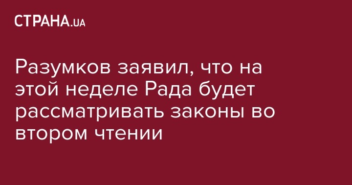 Разумков заявил, что на этой неделе Рада будет рассматривать законы во втором чтении