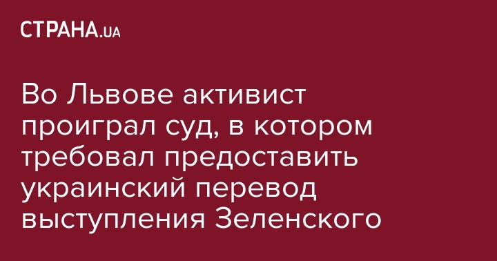 Во Львове активист проиграл суд, в котором требовал предоставить украинский перевод выступления Зеленского