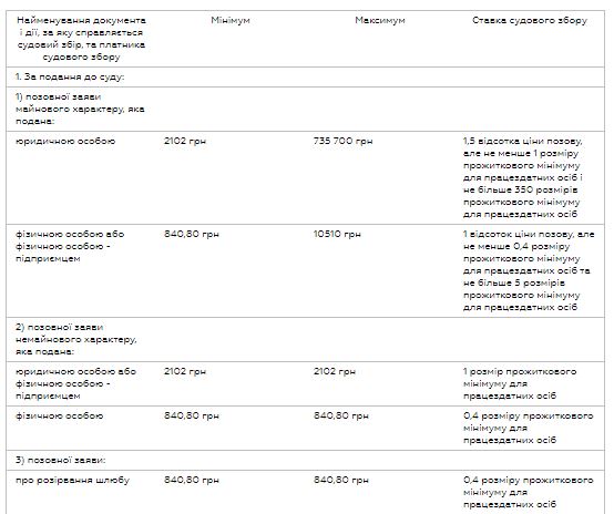Ставки судебного сбора в случае принятия Госбюджета в такой редакции будут следующими: