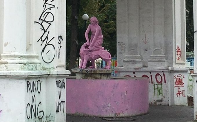На памятнике остались следы розовой краски и в некоторых местах от скульптуры отпали куски бетона. Архитекторы, которые занимаются восстановлением памятника, составили смету, как правильно его отмыть. "На это нужно было потратить 100 тысяч гривен. Но мы не видим смысла тратить такие огромные средства, к тому же реконструкция фонтана будет в следующем году. Поэтому аккуратно отмыли его, поскольку боимся повредить. Скульптура рассыпается, от ноги льва отвалился кусок бетона", - рассказали в КП СЗН Подольского района.