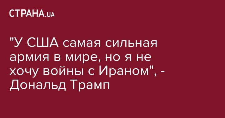 "У США самая сильная армия в мире, но я не хочу войны с Ираном", - Дональд Трамп