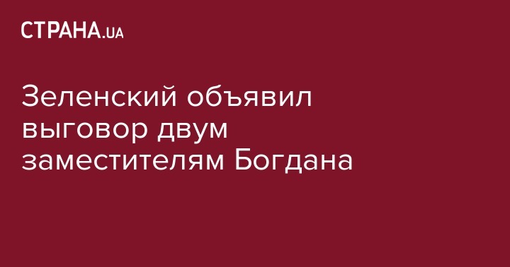 Президент Украины Владимир Зеленский объявил выговор двум заместителям главы Офиса президента Андрея Богдана за ненадлежащее выполнение должностных обязанностей. Об этом говорится в указе №699/2019 от 17 сентября "О привлечении к дисциплинарной ответственности", размещенном на сайте президента.