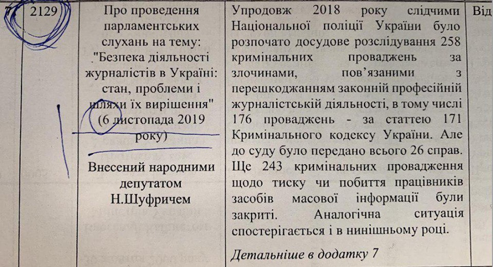 Он также опубликовал документ, исходя из которого предложение о проведении парламентских слушаний по Бузине внес нардеп от ОПЗЖ Нестор Шуфрич.