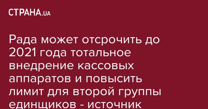 "В результате пришли к компромиссу – лимит для второй группы будет увеличен до 2,5 млн грн, штрафы – уменьшат, а внедрение РРО отстрочат до 2021 года", – сказал собеседник агентства.