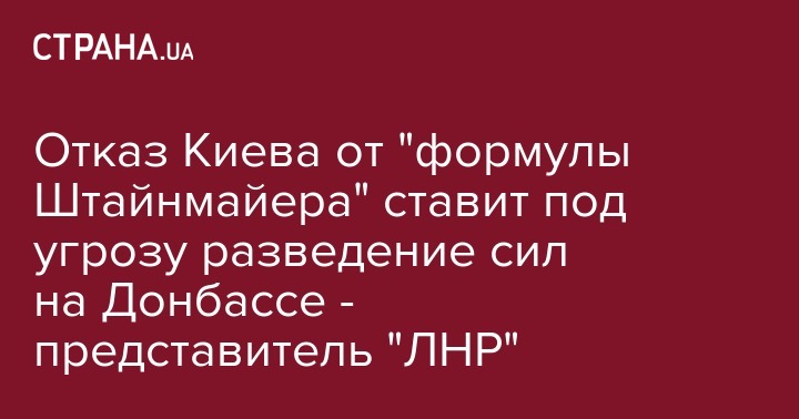 Отказ Киева от "формулы Штайнмайера" ставит под угрозу разведение сил на Донбассе - представитель "ЛНР"