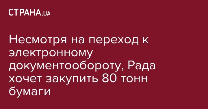 Парламент намерен до конца года приобрести более 80 тонн бумаги для принтеров и копировальной техники, хотя 12 сентября депутаты рассмотрели в первом чтении два законопроекта, призванных сократить расход бумаги законодательным органом. Об этом сообщает UBR.ua.
