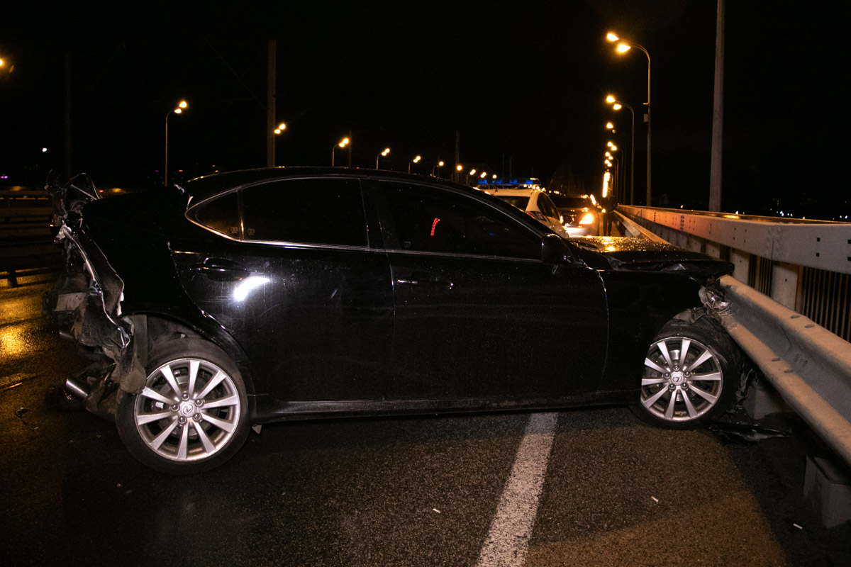 Водитель BMW сообщил, что около 21:00 он двигался по мосту в сторону левого берега и в него въехала девушка на Lexus. Водители не пострадали и дождавшись патрульных начали оформлять аварию, как вдруг Hyundai на полном ходу протаранил Lexus. Удар был такой силы, что автомобиль лишился багажника и отлетел в отбойник.