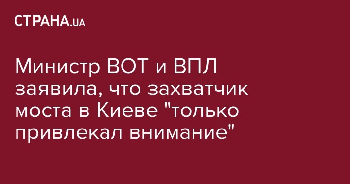 Министр ВОТ и ВПЛ заявила, что захватчик моста в Киеве "только привлекал внимание"