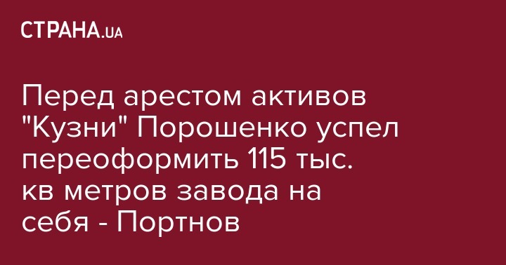 Напомним, что до этого Портнов заявил об аресте имущества и корпоративных прав принадлежащего Порошенко завода.