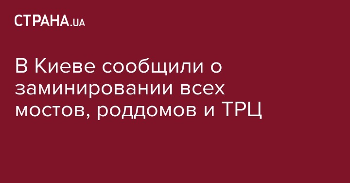 В Киеве в четверг, 19 сентября, столичная полиция получила анонимное сообщение о заминировании всех мостов, родильных домов и ТРЦ в столице.  Об этом сообщают "Стражи Эспрессо".