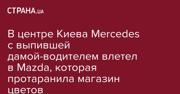 В центре Киева Mercedes c выпившей дамой-водителем влетел в Mazda, которая протаранила магазин цветов