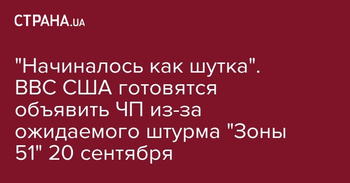 Как сообщала "Страна", в конце июня одно из сетевых сообществ создало в Facebook мероприятие под названием Storm Area 51, They Can't Stop All of Us (Штурмуем Зону 51, они не смогут остановить всех). Если всё это начиналось как шутка, то на настоящий момент в событии собираются принять участие 1,7 млн человек, и наверняка хотя бы часть из них восприняла событие серьезно. Так, владелица отеля в городке неподалеку уже сказала журналистам, что на нее обрушился шквал звонков от людей, которые хотят забронировать комнаты на даты около 20 сентября - день, на который назначен штурм.