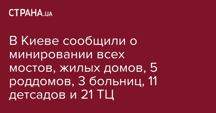 Напомним, 19 сентября в Киеве сообщили о заминировании всех мостов, роддомов и ТРЦ.