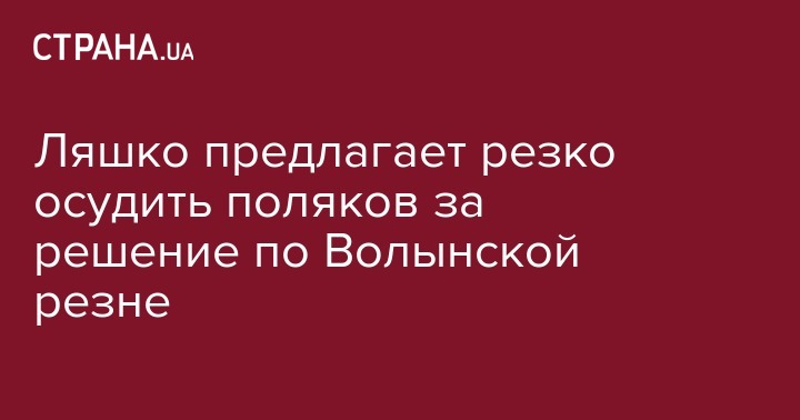 Лидер Радикальной партии Олег Ляшко опубликовал текст проекта официального ответа Украины на решение Сената Польши по Волынской трагедии. Накануне документ был зарегистрирован в Верховной Раде, однако текст проекта постановления №4942 отсутствовал. Авторами документа выступили члены Радикальной партии Олег Ляшко и Виктор Вовк.