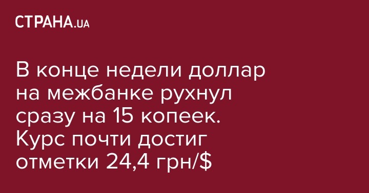 В конце недели доллар на межбанке рухнул сразу на 15 копеек. Курс почти достиг отметки 24,4 грн/$
