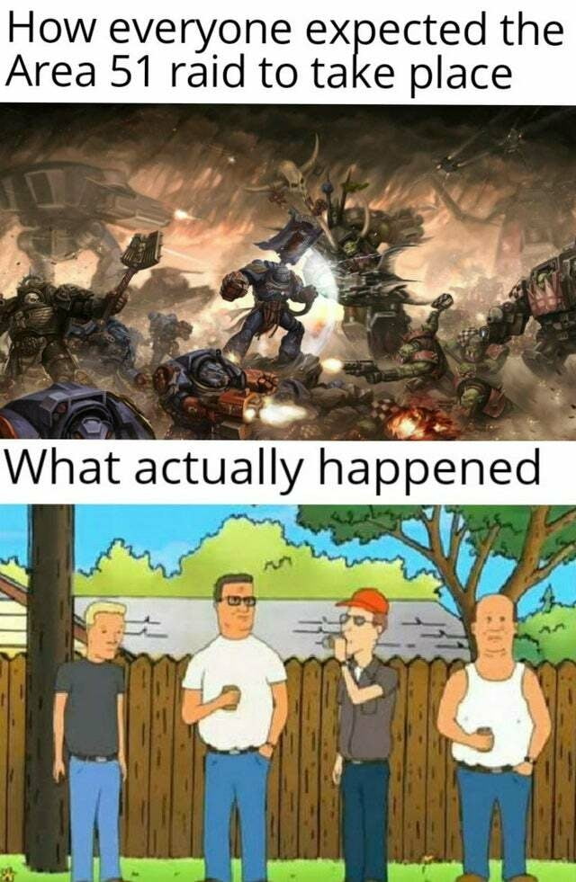Акция стала одним из самых живучих интернет-мемов. Обычно ажиотаж вокруг мемов спадает за 2-3 недели. В этом же случае шумиха не стихала 2 месяца. Кроме того, почти 4 тысячи человек не ограничились постами в соцсети и действительно приехали в Неваду, причем многие с других континентов.