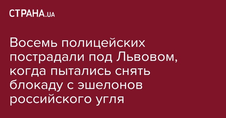 Во Львовской области во время разблокирования движения поездов, которые перевозили уголь, на железнодорожной станции "Сосновка" пострадали восемь правоохранителей. Об этом сообщает пресс-служба полиции Львовской области на Facebook.