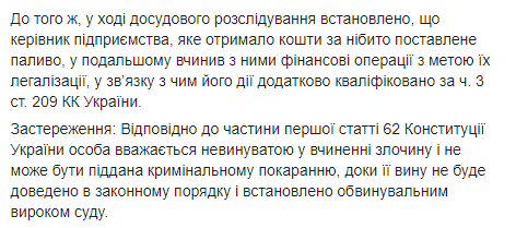 Действия указанных лиц квалифицированы по признакам преступлений, предусмотренных ч.5 ст.191, ч.1 ст.366, ч.2 ст.28 ч.1 ст.366 УК Украины.