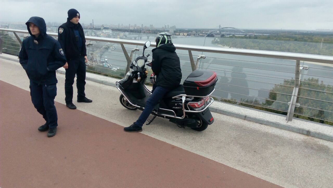 Водитель с признакам опьянения заехал на электромопеде на велодорожку пешеходно-велосипедного моста в Киеве. Об этом сообщает пресс-служба патрульной полиции столицы в своем ТГ-канале.