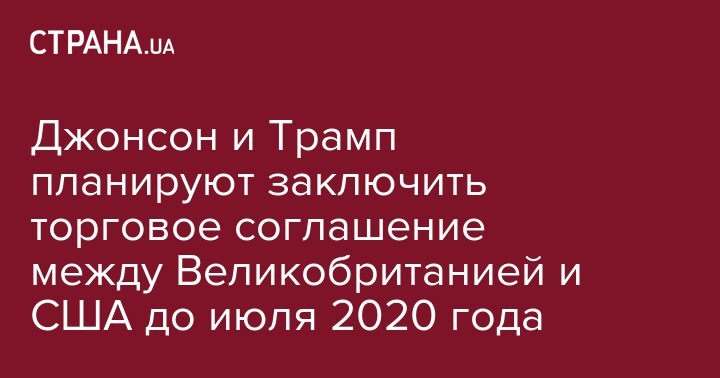 Великобритания и США планируют заключить соглашение по торговле до июля следующего года. Об этом со ссылкой на Sun пишет "Интерфакс-Украина"