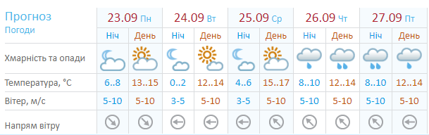 "Страна" собрала всю информацию о предстоящей погоде на неделю - с 23 по 29 сентября - по данным шести погодных ресурсов.