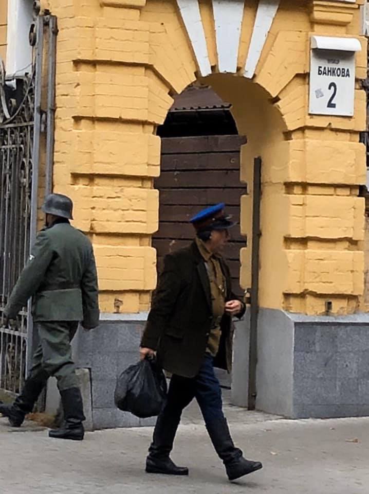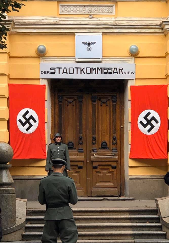 Как выяснилось, нацистская символика оказалась декорациями, а на банковой снимают художественный фильм о фашистской оккупации Киева в период Второй Мировой войны.