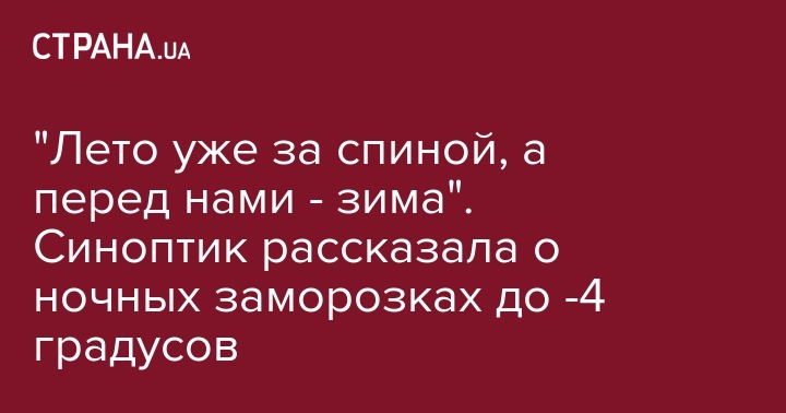 "Лето уже за спиной, а перед нами - зима". Синоптик рассказала о ночных заморозках до -4 градусов