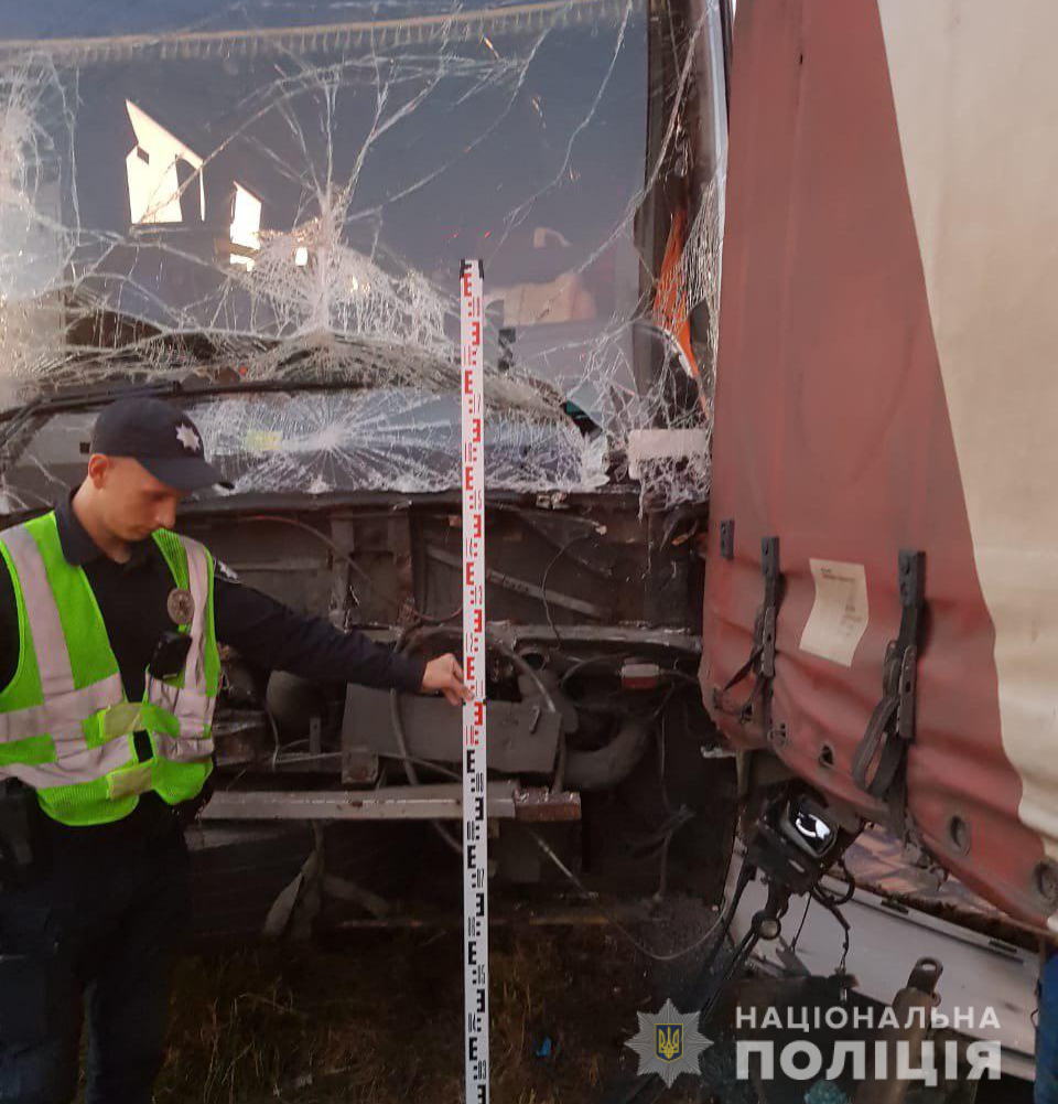 Уточняется, что двигавшийся в сторону Харькова грузовик столкнулся с припаркованным на обочине пассажирским автобусом. От удара тот наехал на трех мужчин, которые стояли перед ним. После столкновения с автобусом грузовик протащило вперед и он въехал в еще одну машину на обочине.