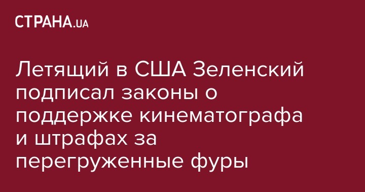 В понедельник, 23 сентября, президент Украины Владимир Зеленский, который судя по программе визита в США, сейчас летит в Нью-Йорк, подписал законы о поддержке кинематографа и финансировании дорожного хозяйства. Об этом свидетельствует информация на сайте главы государства