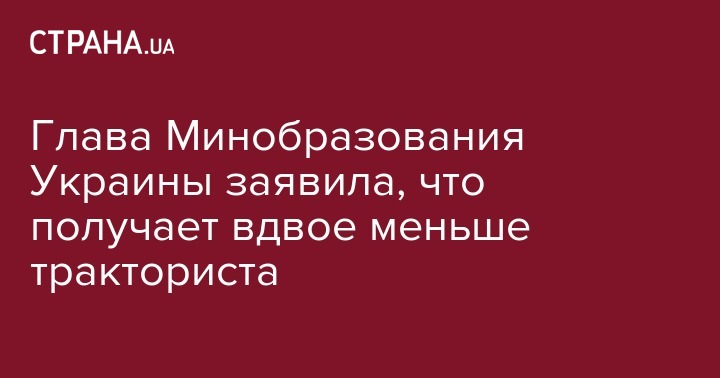 Глава Минобразования Украины заявила, что получает вдвое меньше тракториста