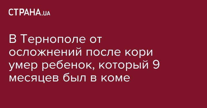 В Тернополе от осложнений после кори умер ребенок, который 9 месяцев был в коме