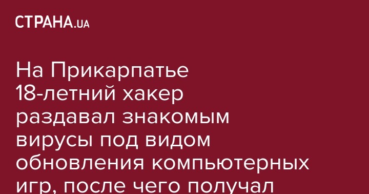 На Прикарпатье 18-летний хакер раздавал знакомым вирусы под видом обновления компьютерных игр, после чего получал доступ ко всем их данным