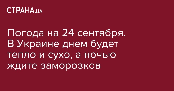 Во вторник, 24 сентября, в Украине ожидается переменно облачная погода без осадков с восточным ветром 5-10 м / с. Об этом сообщает Укргидрометцентр.