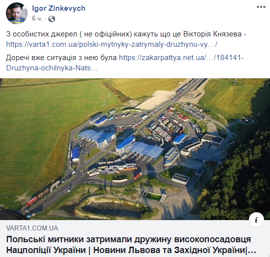 Первыми об инциденте сообщили львовские СМИ. Сайт "Діло" написал, что польские таможенники остановили Князеву на автопереходе "Гребенне – Рава-Русская".