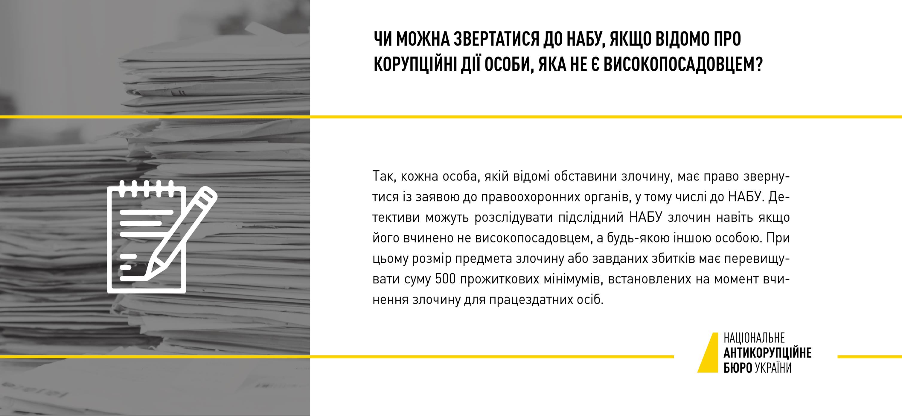 Наряду с этим в Бюро обратили внимание: заявителям стоит беспокоить их только в том случае, если им стали известны факты совершения исключительно подследственного НАБУ коррупционного правонарушения.