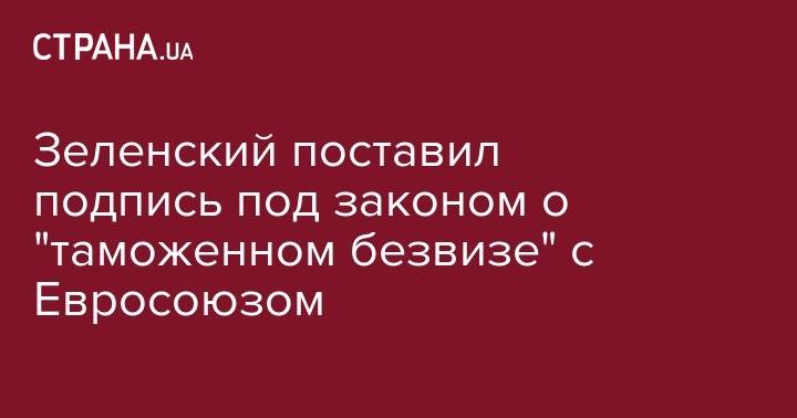 Зеленский поставил подпись под законом о "таможенном безвизе" с Евросоюзом