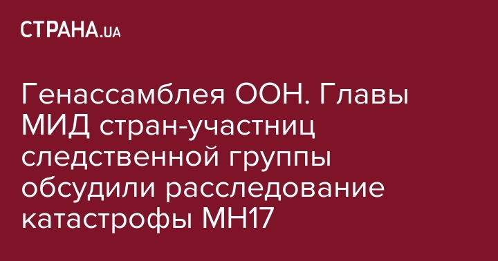 Во вторник, 24 сентября, во время сессии Генассамблеи ООН в Нью-Йорке министры иностранных дел Украины, Нидерландов, Австралии, Бельгии и Малайзии обсудили дальнейшие совместные шаги с целью привлечения к уголовной ответственности лиц, виновных в катастрофе на Донбассе самолета "Малайзийских авиалиний" рейса МН17 в 2014 году.