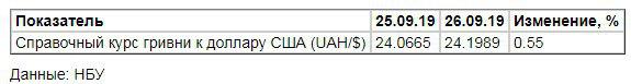 Так, справочный курс гривни к доллару США на межбанковском валютном рынке по состоянию на 12:00 26 сентября составляет 24,20 грн/$1.