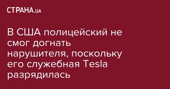 В США полицейский не смог догнать нарушителя, поскольку его служебная Tesla разрядилась