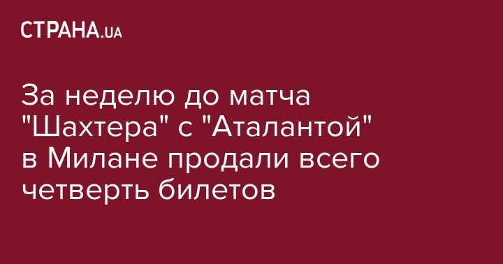 На матче Лиги чемпионов УЕФА между донецким футбольным клубом "Шахтер" и итальянской "Аталантой" из Бергамо, который состоится 1 октября в Милане, аншлага не ожидают. На сегодняшний день реализовано чуть менее 20 тысяч билетов.