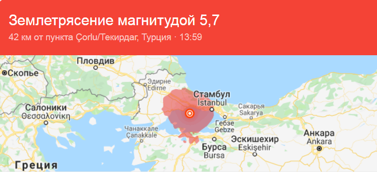 24 сентября в окрестностях Стамбула уже фиксировали землетрясение. Его эпицентр был у берега Мраморного моря, но толчки ощущалось по  всему городу.