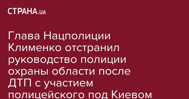 Глава Нацполиции Украины Игорь Клименко принял решение отстранить руководящий состав управления полиции охраны Киевской области после того, как сотрудник полиции охраны в Броварах наехал на остановку общественного транспорта, в результате чего погибла женщина и два человека получили травмы.