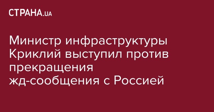 Министр инфраструктуры Криклий выступил против прекращения жд-сообщения с Россией
