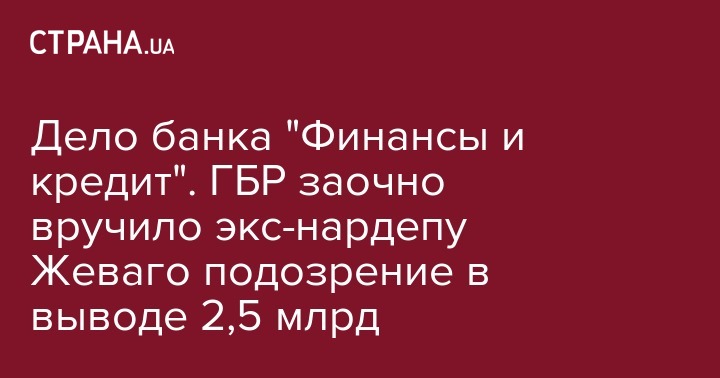 Дело банка "Финансы и кредит". ГБР заочно вручило экс-нардепу Жеваго подозрение в выводе 2,5 млрд