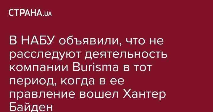 В НАБУ заявили, что проверка деятельности членов правления компании в периоды, которые не имеют отношения к расследованию, не является их задачей. Таким образом они сообщили, что их расследование не касается 2014 года, когда сын бывшего в то время вице-президента США Хантер Байден стал членом совета директоров Burisma Limited.